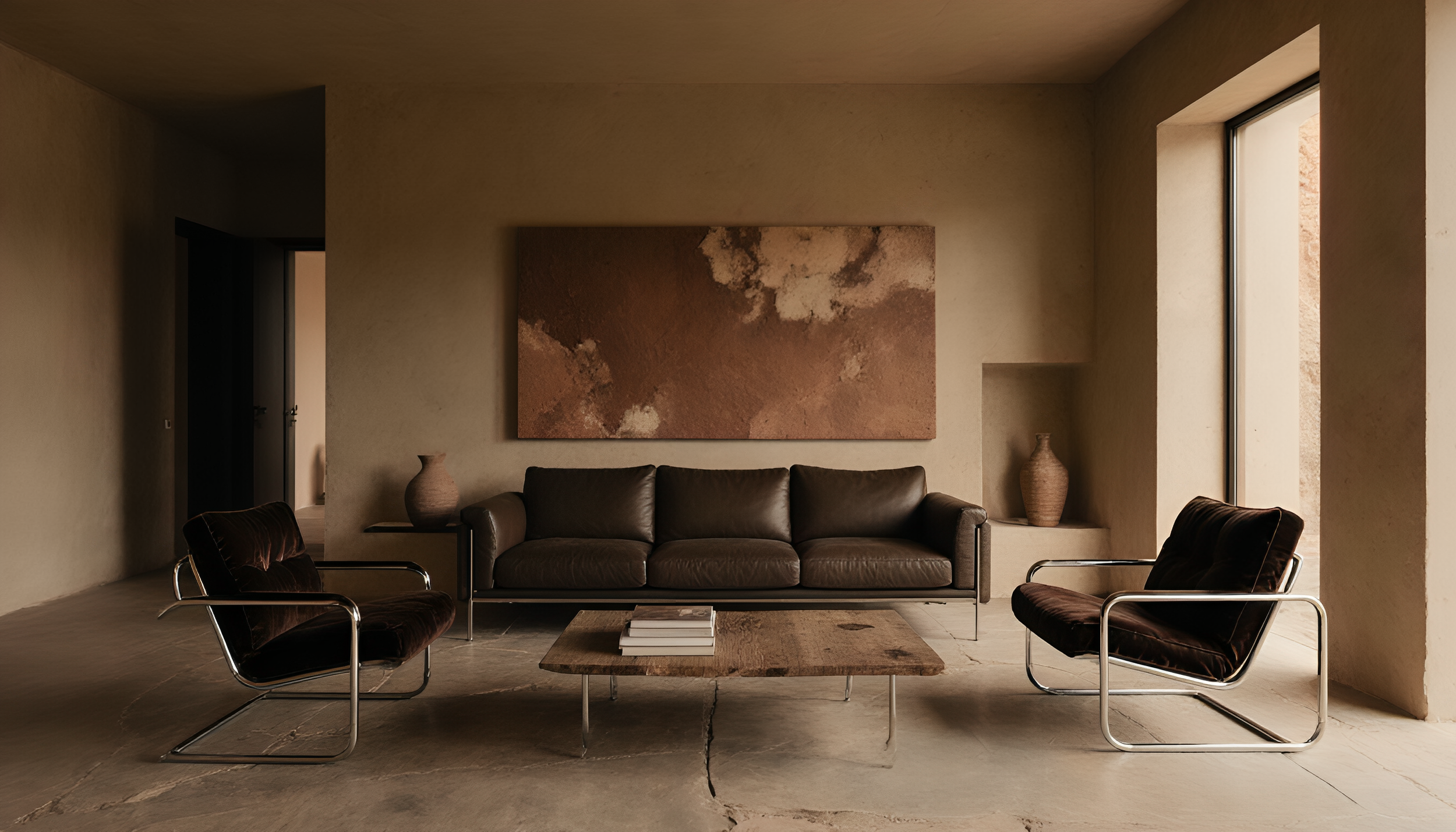 A warm retreat shaped by earth and light.